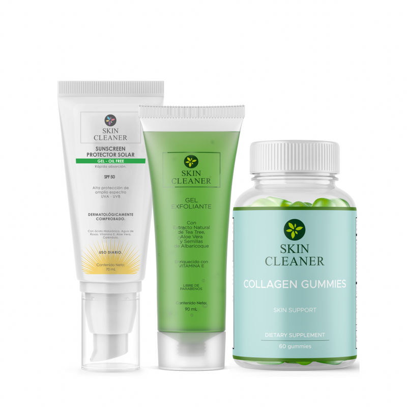 1. Skin Cleaner Oil Control Gel Exfoliante: un gel exfoliante con gránulos flexibles de semillas de albaricoque ultramicronizados que remueven todos los excesos y promueve la renovación celular.