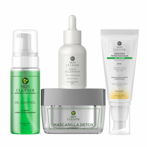 Skin Cleaner Oil Control es una línea de productos especializados en el adecuado cuidado de las pieles mixtas a grasas o con tendencia al acné y está conformada actualmente por 8 productos, encuentra 4 de ellos en este kit: