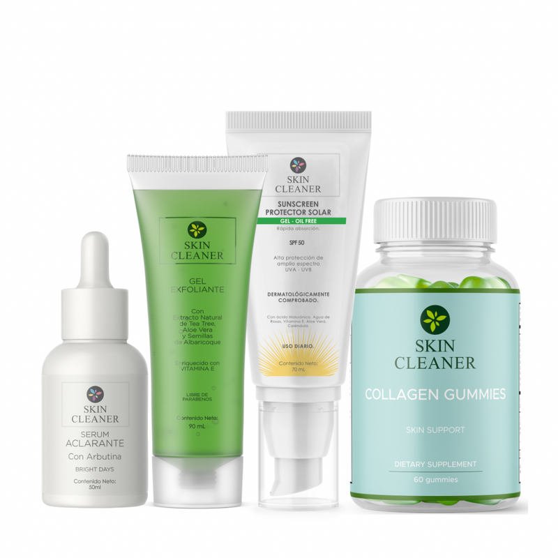 1. Skin Cleaner Oil Control Gel Exfoliante: un gel exfoliante con gránulos flexibles de semillas de albaricoque ultramicronizados que remueven todos los excesos y promueve la renovación celular.